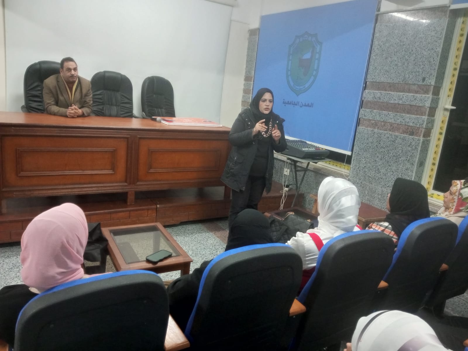 تحت رعاية السيد ا.د/حسان النعماني رئيس جامعة سوهاج واشراف السيد ا.د/عبدالناصر يس نائب رئيس الجامعة لشئون التعليم والطلاب و متابعة السيد ا.د/ خالد عبداللطيف عمران نائب رئيس الجامعة لشئون خدمة المجتمع وتنمية البيئة وتنفيذ وتنسيق وتنظيم د/عبيره محمود السيد مدير وحدة مناهضة العنف ضد المرأة بجامعة سوهاج بالتعاون مع المدن الجامعية وبحضور ا/ حامد الخولى مدير عام المدن الجامعية وبحضور هيئة الإشراف من المدن الجامعية أقيمت بقاعة المؤتمرات بالمدن الجامعية ندوة توعوية لمناهضة العنف ضد المرأة وقد استهدفت الندوة الطالبات والعاملات بقطاع المدن الجامعية حاضر في هذه الندوة كلا د/ عبيره محمود السيد مدير وحده مناهضة العنف ضد المرأة ؛ د/طارق زكى استاذ علم النفس المساعد ومدير مركز خدمة الطلاب ذوى الاعاقة بالجامعة.