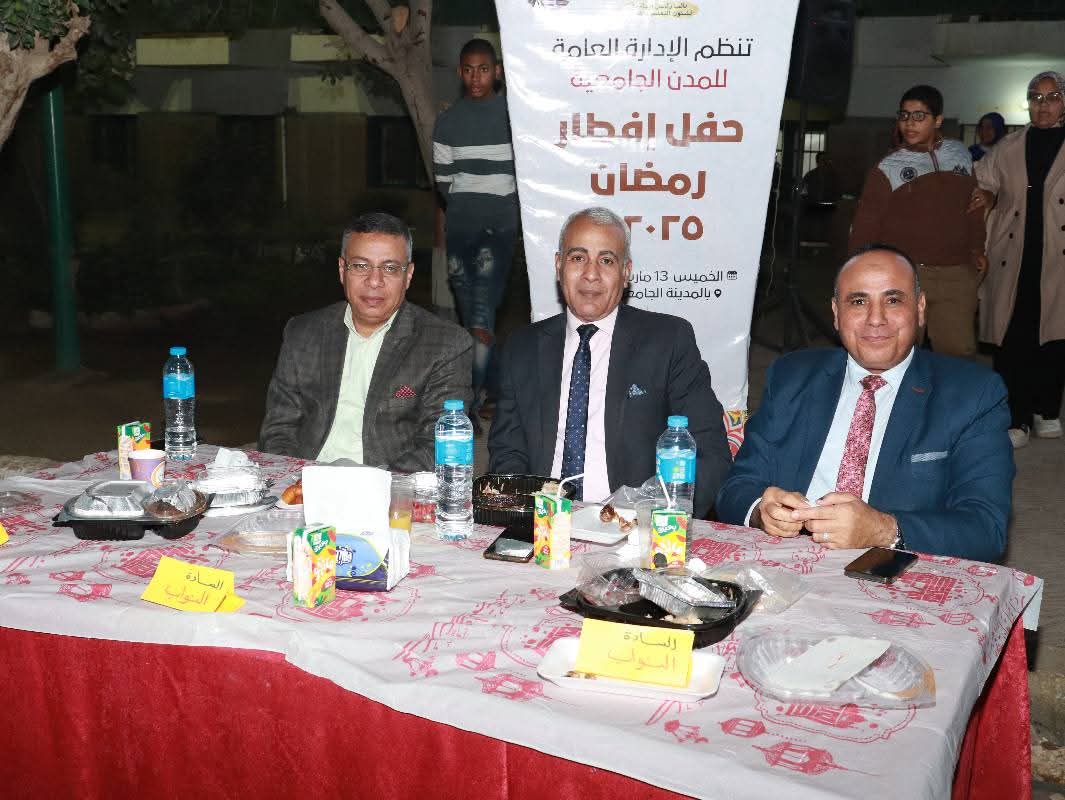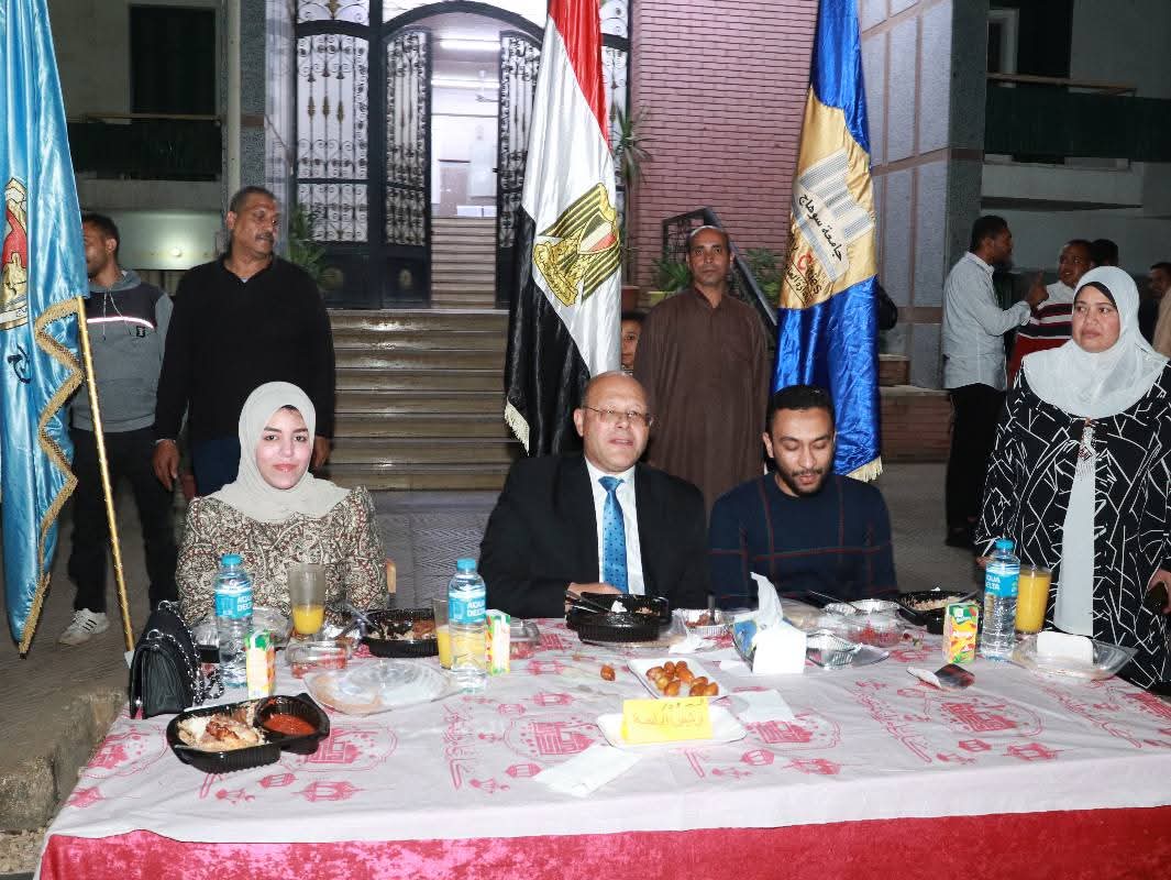 نظّمت إدارة المدن الجامعية بجامعة سوهاج إفطارًا جماعيًا بحضور السيد أ.د/ حسان النعماني، رئيس الجامعة، والسيد أ.د/ عبد الناصر يس، نائب رئيس الجامعة لشؤون التعليم والطلاب، والسيد أ.د/خالد عمران نائب رئيس الجامعة لشئون البيئة ، وأ/أشرف القاضى الأمين العام لجامعة سوهاج إلى جانب عدد من قيادات الجامعة والسادة عمداء الكليات وأعضاء هيئة التدريس، وذلك بإشراف أ/ حامد الخولي، مدير عام المدن الجامعية، ومديري المدن ورؤساء الوحدات وجميع العاملين بإدارات المدن الجامعية.