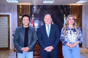 النعماني يستقبل نجوم لجنة تحكيم “تياترو الجامعة” سامح حسين ولقاء سويدان