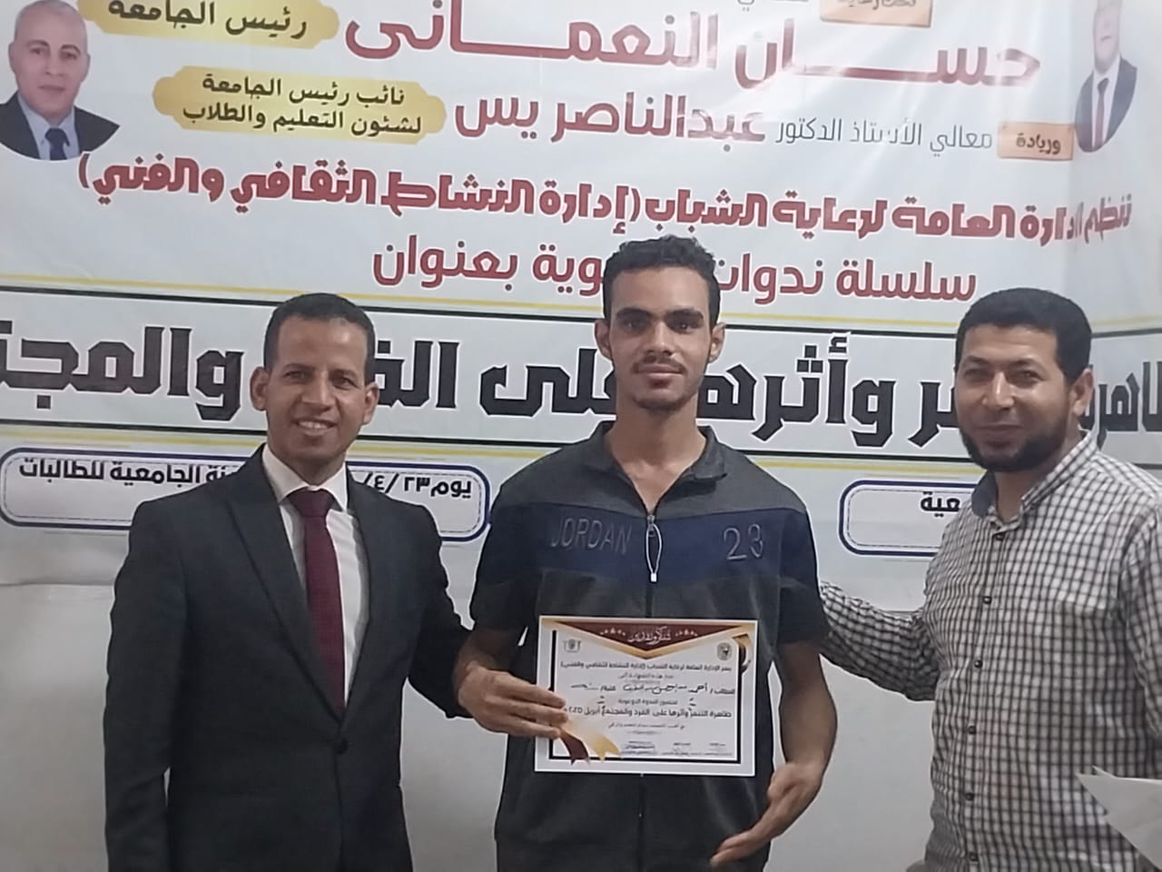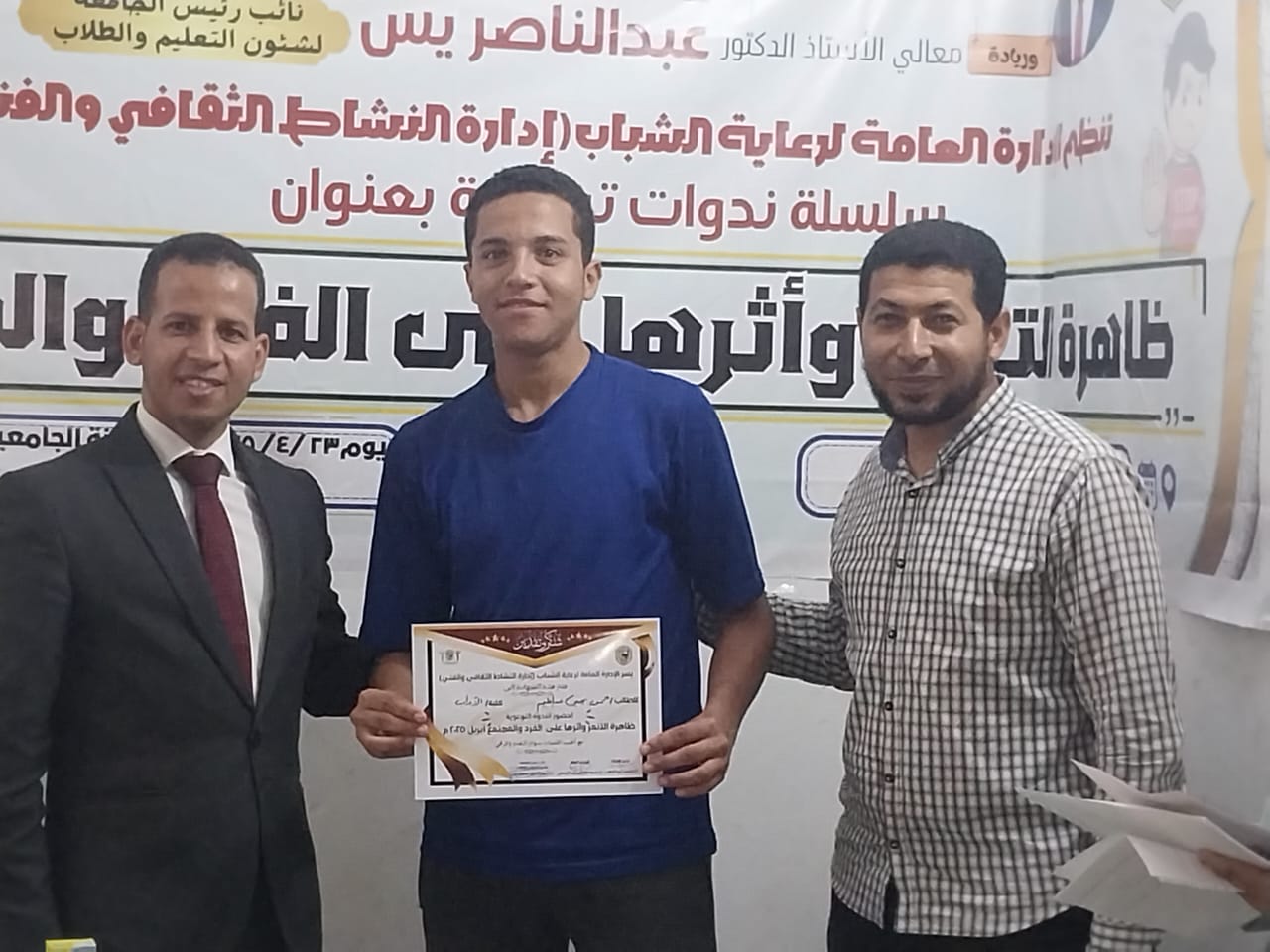 وفى ختام كل ندوة ، تم توزيع شهادات تقدير على الطلبة والطالبات المشاركين ، تقديراً لمشاركتهم الفعالة وتفاعلهم الإيجابي مع موضوع الندوة.
