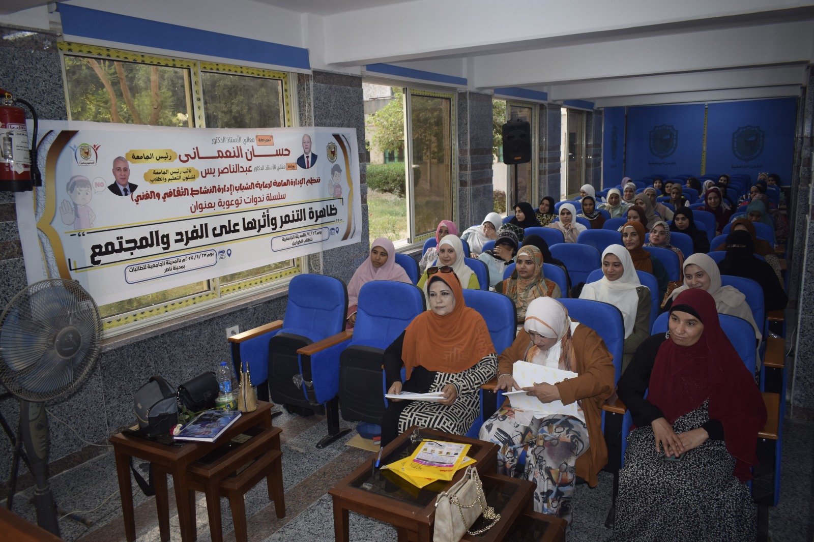 أقيمت الندوة الأولى الخاصة بطالبات المدن الجامعية يوم الثلاثاء الموافق ٢٢ إبريل فى تمام الساعة الخامسة مساءاً ، بقاعة المؤتمرات بالمدينة الجامعية للطالبات ، وقد حاضر فيها الدكتورة صابحة السيد ، مدرس مادة التوحد ببرنامج الفئات الخاصة بكلية الآداب ، وتناولت خلالها أشكال التنمر وأثره النفسى والاجتماعي ،وسبل مواجهته داخل المجتمع الجامعي.