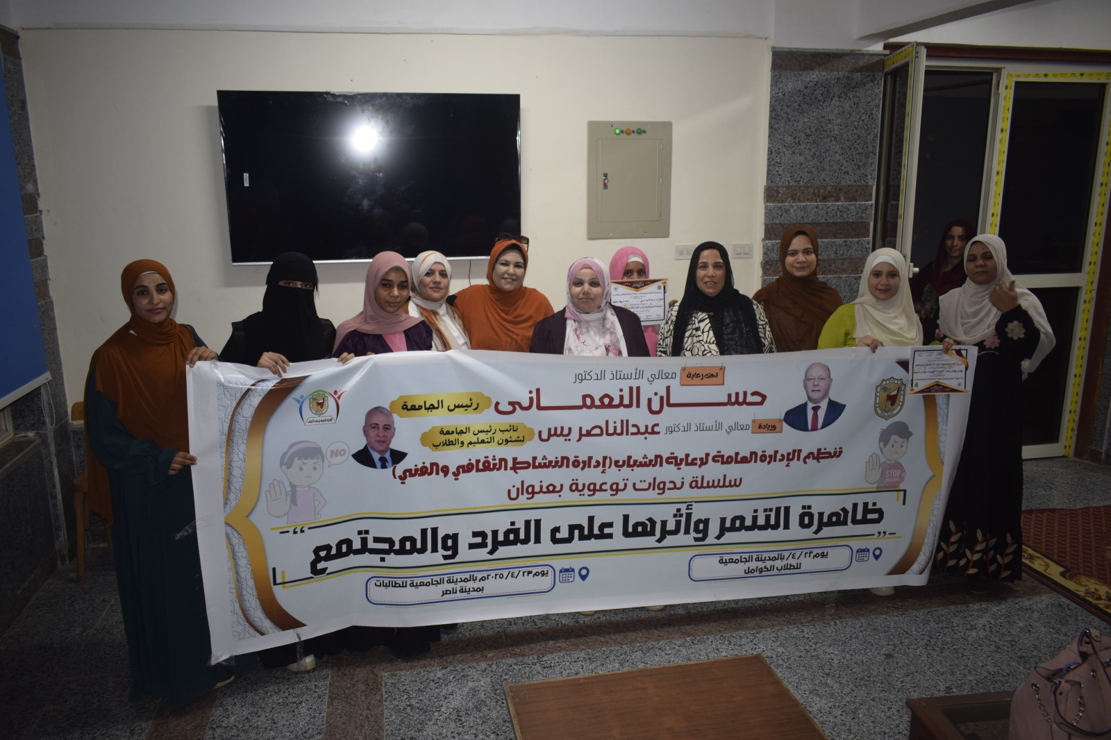 ✍️ إقامة ندوتين توعويتين بعنوان “لا للتنمر” لطلبة وطالبات المدن الجامعية.